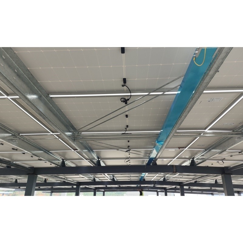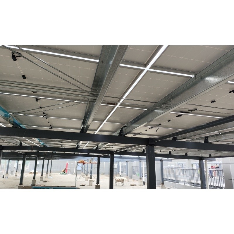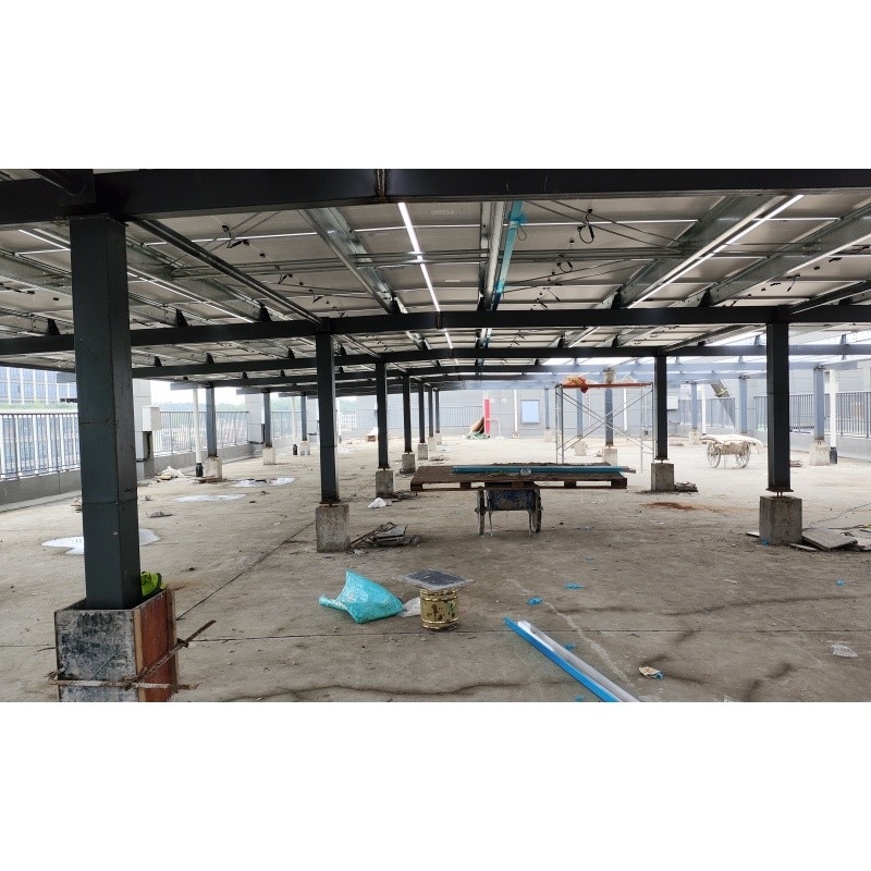 อาคารที่มีโครงสร้างจากเหล็กที่ทนทานและทนลม ใช้ในการติดตั้งอุปกรณ์พลังแสงอาทิตย์และพลังงานสามารถนํามาให้บริการที่ใกล้เคียงโดยไม่ต้องส่งระยะไกลโดยหลีกเลี่ยงการสูญเสียไฟฟ้าที่เกิดจากสายส่งระยะไกล